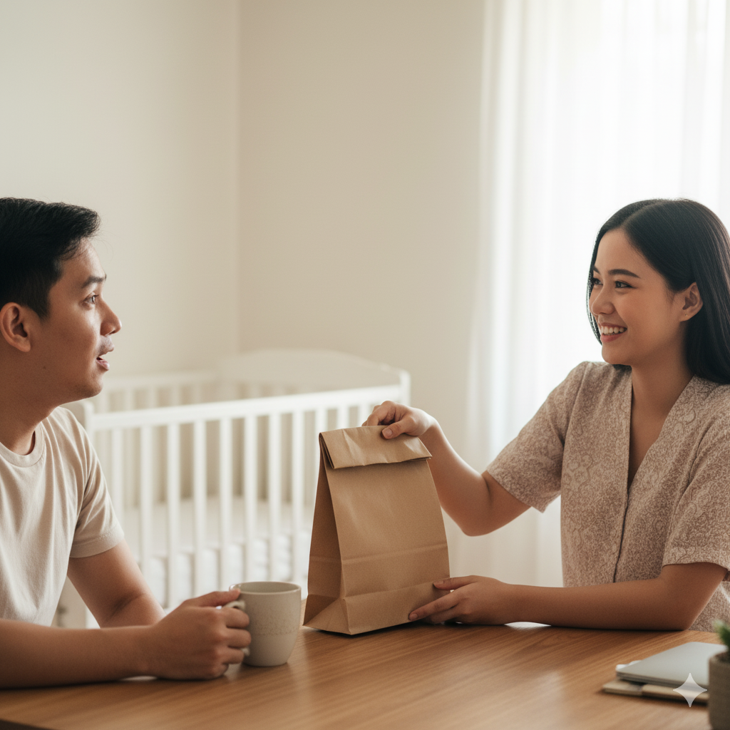 Habang kumakain siya, kinuha ko ‘yung maliit na paper bag at iniabot sa kanya.