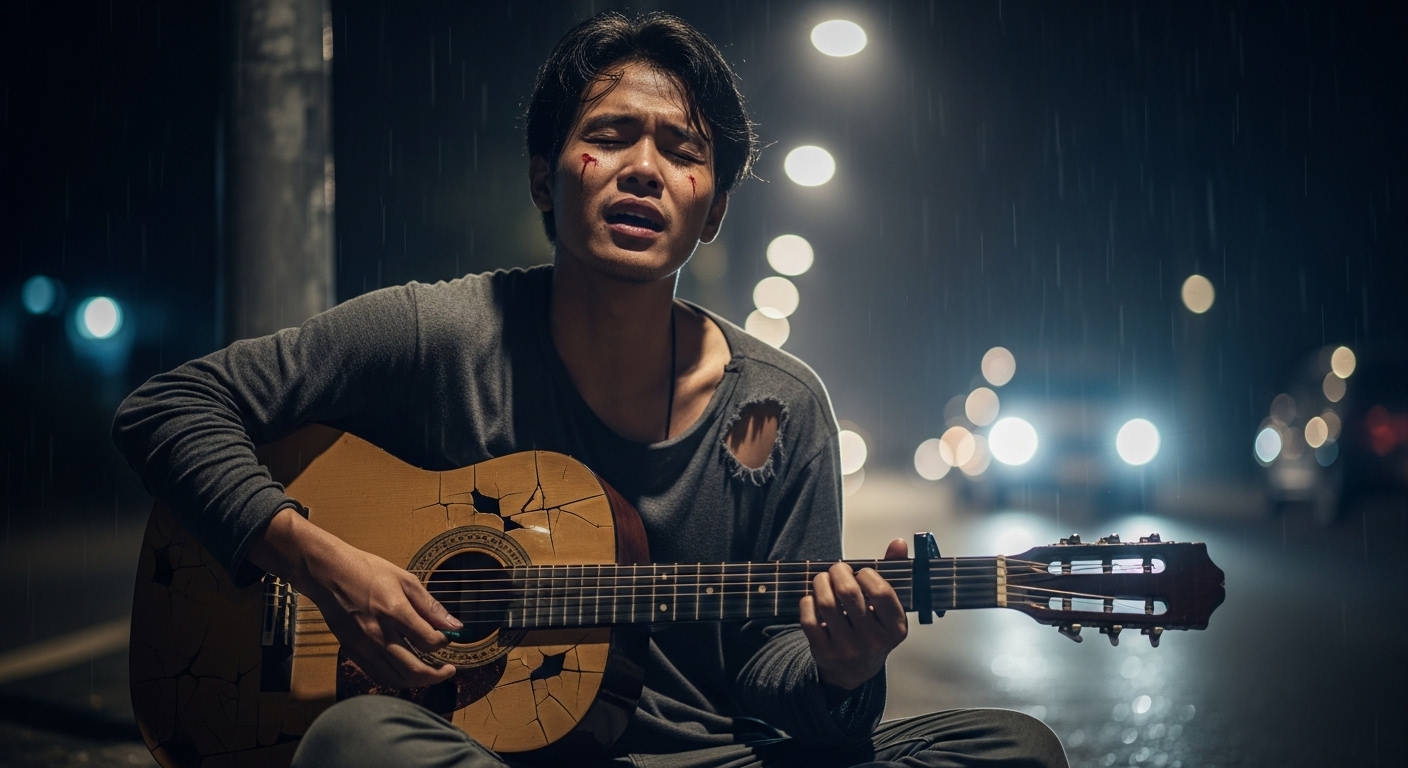 Kinagabihan, habang naglalakad pauwi, napansin niyang sa isang lumang tindahan ng gamit ay may naka-display na gitara—parehong-pareho sa gitara ng ama niya.