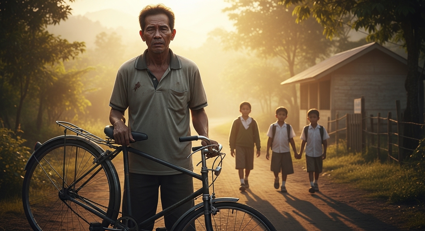 Si Papa Danilo ay isang karpintero sa probinsya ng Nueva Ecija. Araw-araw, nagigising siya bago pa sumikat ang araw, humahawak ng lumang bisikleta, at naglalakad ng sampung kilometro papunta sa trabaho dahil sira na ang gulong. Hindi siya nagrereklamo — dahil bawat pawis na tumutulo sa kanya ay para sa tatlong anak na gusto niyang makapagtapos.
