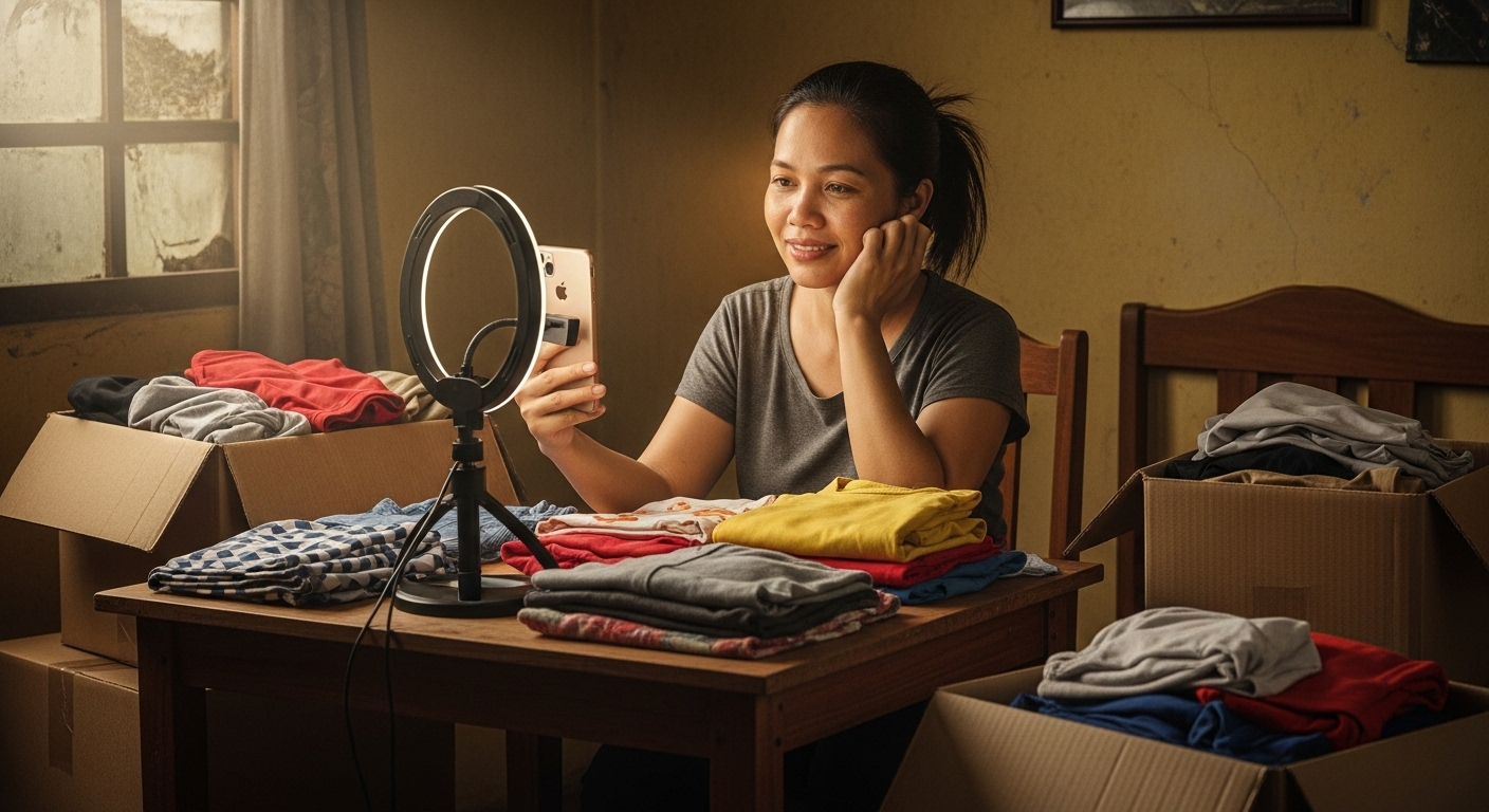Araw-araw, alas-siyete pa lang ng umaga, gising na si Mara, isang 27-anyos na online seller mula sa Cavite. Nakaharap siya sa maliit niyang mesa, may lumang cellphone na medyo basag ang screen, at isang ring light na binili pa niya secondhand.