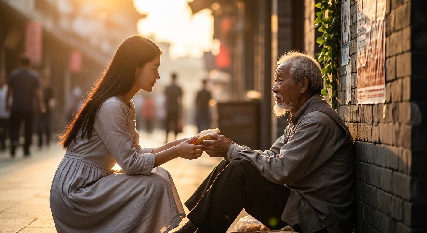Isang araw, habang papauwi na siya galing palengke, may nakita siyang matandang lalaki na nakaupo sa tabi ng kalsada. Marumi ang damit, walang tsinelas, at nanginginig habang yakap ang kanyang tiyan.